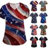 Γυναικεία Μπλουζάκια με Στάμπα, Κοντομάνικα, με Λαιμόκοψη V, Στάμπα για την Ημέρα της Ανεξαρτησίας, Μπλούζα Εργασίας με Τσέπη