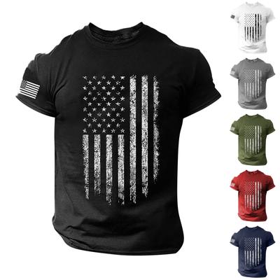 Men's Summer Short Sleeve Printed T-Shirt Casual Neck Retro Printed Independence Day T-Shirt Street Track Tops
