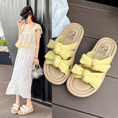Thick-soled slippers for women's outerwear 2025 summer new models with skirts, versatile bows, one-word sandals