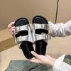 2025 spring new slippers women's summer wear flat-bottomed silver retro beach cool slippers women