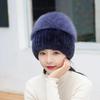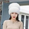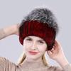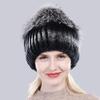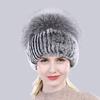 New Outdoor Good Elastic Natural Rex Rabbit Fur Hat Women Winter Knitted Real Sliver Fox Fur Cap Lady Real Fur Hats