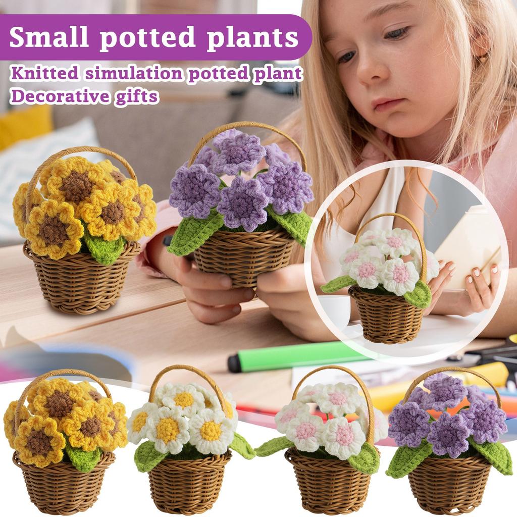 Crocheted Sunflower Basket Hand-knitted Simulated Sunflower Potted Ornaments Holiday Gifts