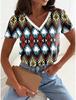 Summer Women's New Minimalist Flower Pattern 3D Printed Loose Casual V-neck Short Sleeved T-shirt