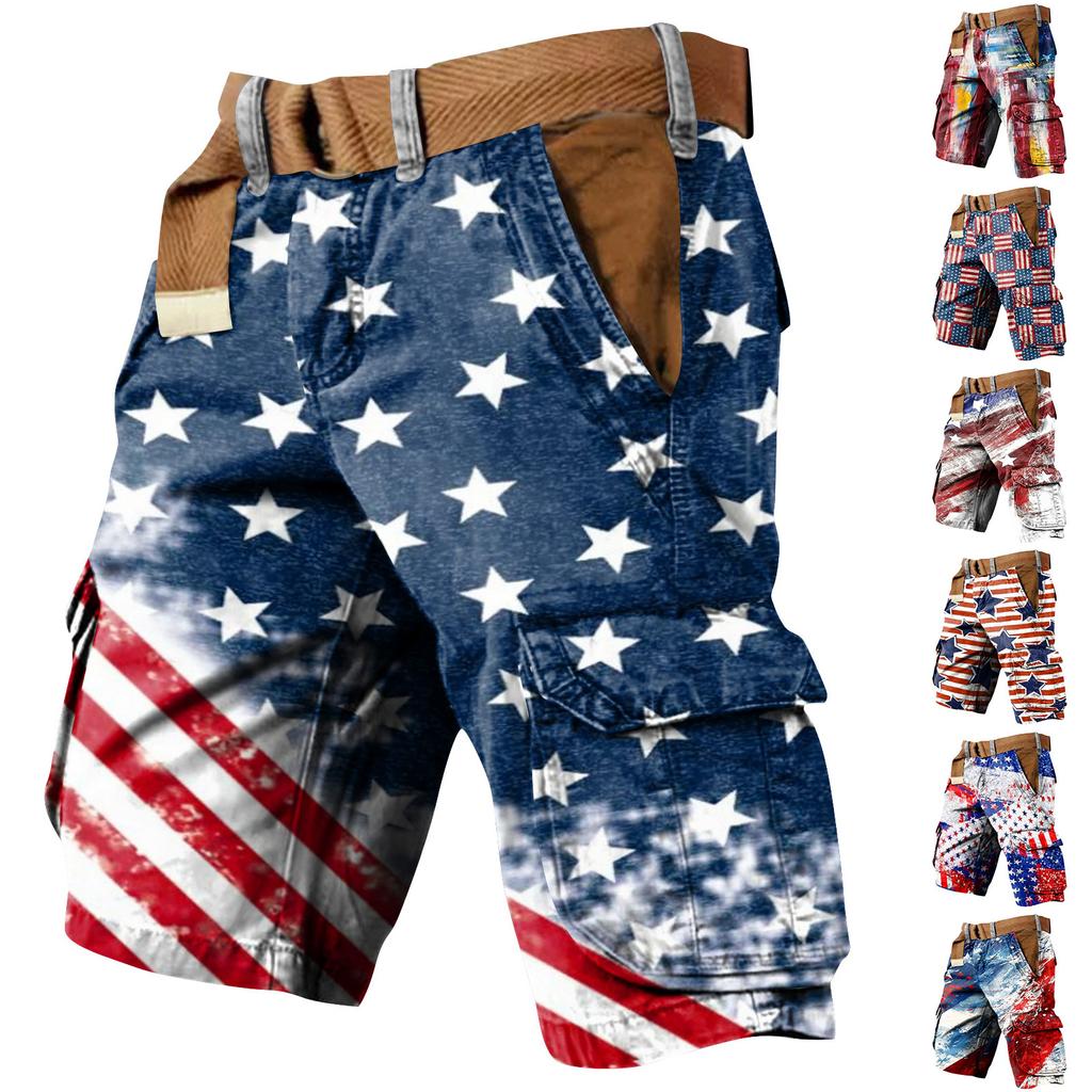 Ανδρικές Βερμούδες Εργασίας με Πολλαπλές Τσέπες και Εκτύπωση για την Ημέρα της Ανεξαρτησίας
