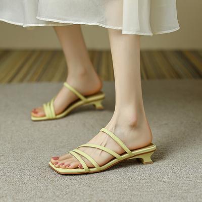 Kitten and sandals women's 2025 new one-word belt student simple women's summer cool slippers low heels