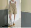 Women's Khaki Cotton Slimming Loose Overalls with Big Pockets - Summer Wide Leg Sling Shorts