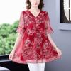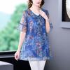 Women's Plus Size Blouse Summer Stretch Print Mesh Blouse Oversized Shirt Short Sleeved Loose Blouse Top