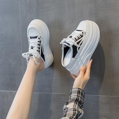 Baotou slippers women wear lazy thick-soled muffins, delicate half-tray, small white inner height-increasing women's shoes