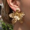 Υπερμεγέθη μεταλλικά σκουλαρίκια με μεγάλα λουλούδια, εξατομικευμένα τρισδιάστατα πτυχωτά λουλούδια για τα αυτιά