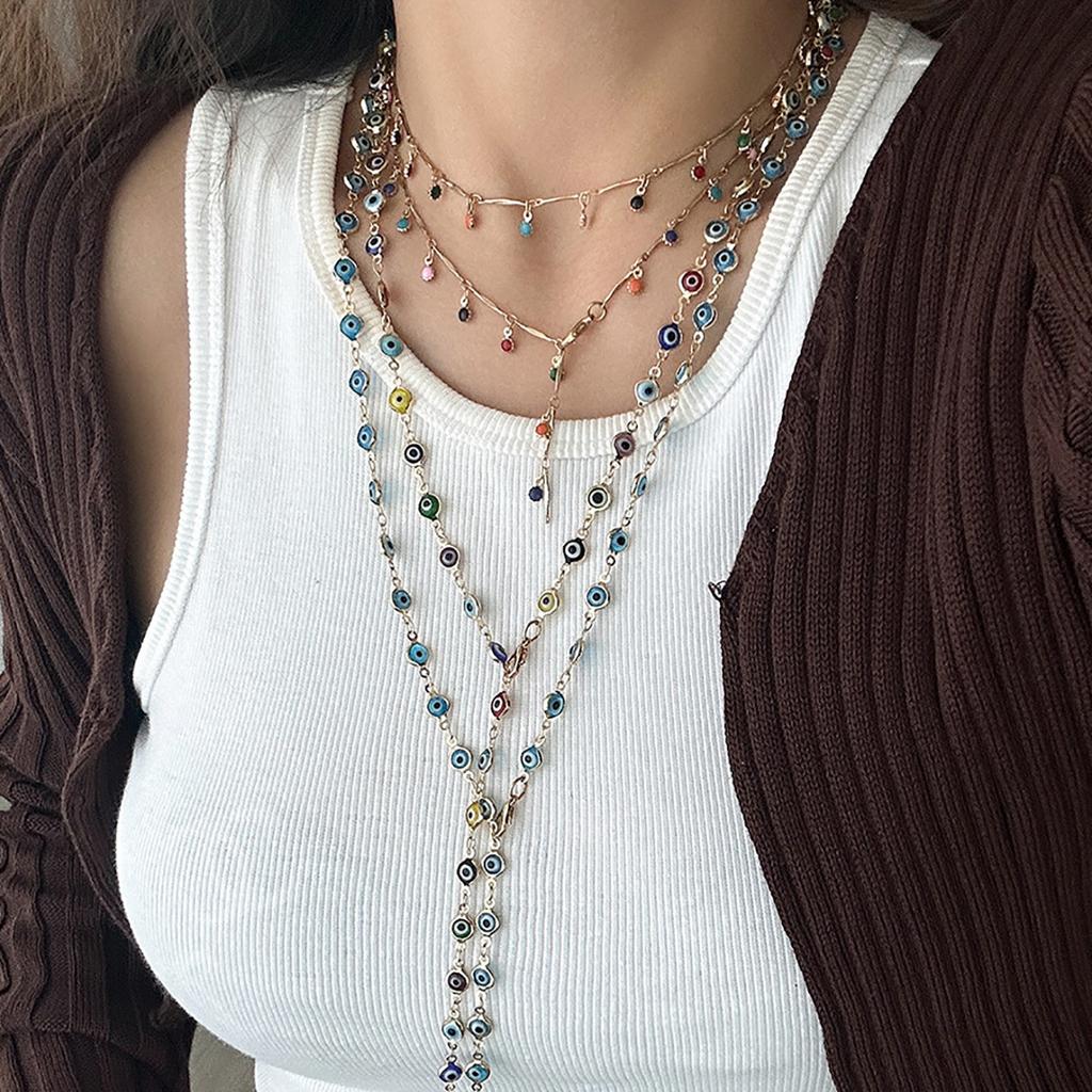 Love-shaped long eye fringed necklace for women, stacked with multi-layer Y-shaped imitation pearl holiday jewelry