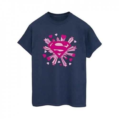 DC Comics Womens/Ladies Superman Pink Hearts And Stars Logo Cotton Boyfriend T-Shirt