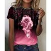 Summer New Loose Casual Plus Size Women's T-shirts Round Neck Rose Print Short-sleeved T-shirts