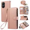 Για Xiaomi Poco X7 Pro 5G/Redmi Turbo 4 5G Θήκη Πολλαπλών Υποδοχών Καρτών Δερμάτινη Θήκη Τηλεφώνου με Φερμουάρ με Λουράκι Ώμου/Λουράκι Καρπού