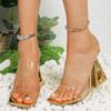 Fashion transparent crystal one-word with open-toed sandals female summer non-slip fairy with skirt, thick heel one-word drag