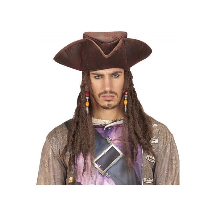 Chapeau Tricorne Pirate Simili Cuir Avec Cheveux pour Adulte - Marron