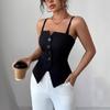 Women's Square Neck Button Up Vest, Button Up U Neck Sleeveless Solid Color Slim Fit Sexy Vest Top