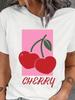 Discover the charm of European and American style with this stylish women's top, featuring a delightful cherry print. Crafted from soft, high-quality polyester, it offers both comfort and durability. The top is designed with short sleeves, making it perfect for warm days, while the round neckline adds a classic touch to its modern appeal. Enjoy free shipping on this trendy addition to your wardrobe.
