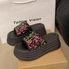 Platform slippers women's summer wear new beautiful heightening beach shoes one-word drag slope heel fashion
