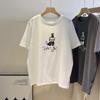 2025 Summer Women's Embroidered Dog T-shirt - Short Sleeve, Simple Line Design, Round Neck