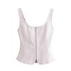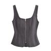 Spring 2025 Women's European & American Style Zipper Shoulder Strap Square Neck Slim-fit Top