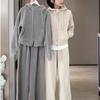 Ανακαλύψτε την απόλυτη άνεση και το στυλ με αυτό το σετ φούτερ δύο τεμαχίων μεγάλου μεγέθους, σχεδιασμένο ειδικά για γυναίκες που εκτιμούν την casual κομψότητα.. Αυτό το σύνολο διαθέτει ένα άνετο τοπ με μακριά μανίκια σε συνδυασμό με παντελόνι φαρδιάς γραμμής, και τα δύο κατασκευασμένα από υψηλής ποιότητας βισκόζη.. Το πολυτελές ύφασμα προσφέρει απαλή αφή στο δέρμα, ενώ εξασφαλίζει διαπνοή και ανθεκτικότητα.. Ιδανικό για χαλάρωση στο σπίτι ή για δουλειές, αυτό το σετ συνδυάζει πρακτικότητα με κομψό σχέδιο, καθιστώντας το απαραίτητο για την γκαρνταρόμπα σας.