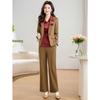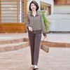 This stylish two-piece set is perfect for the modern middle-aged woman looking to update her spring wardrobe. Crafted entirely from high-quality polyester, the set includes a fashionable jacket and a coordinating shirt. The lightweight material ensures comfort and breathability, making it ideal for the transitional spring weather. The jacket adds a touch of sophistication, while the matching shirt complements the ensemble perfectly, creating a chic and cohesive look.