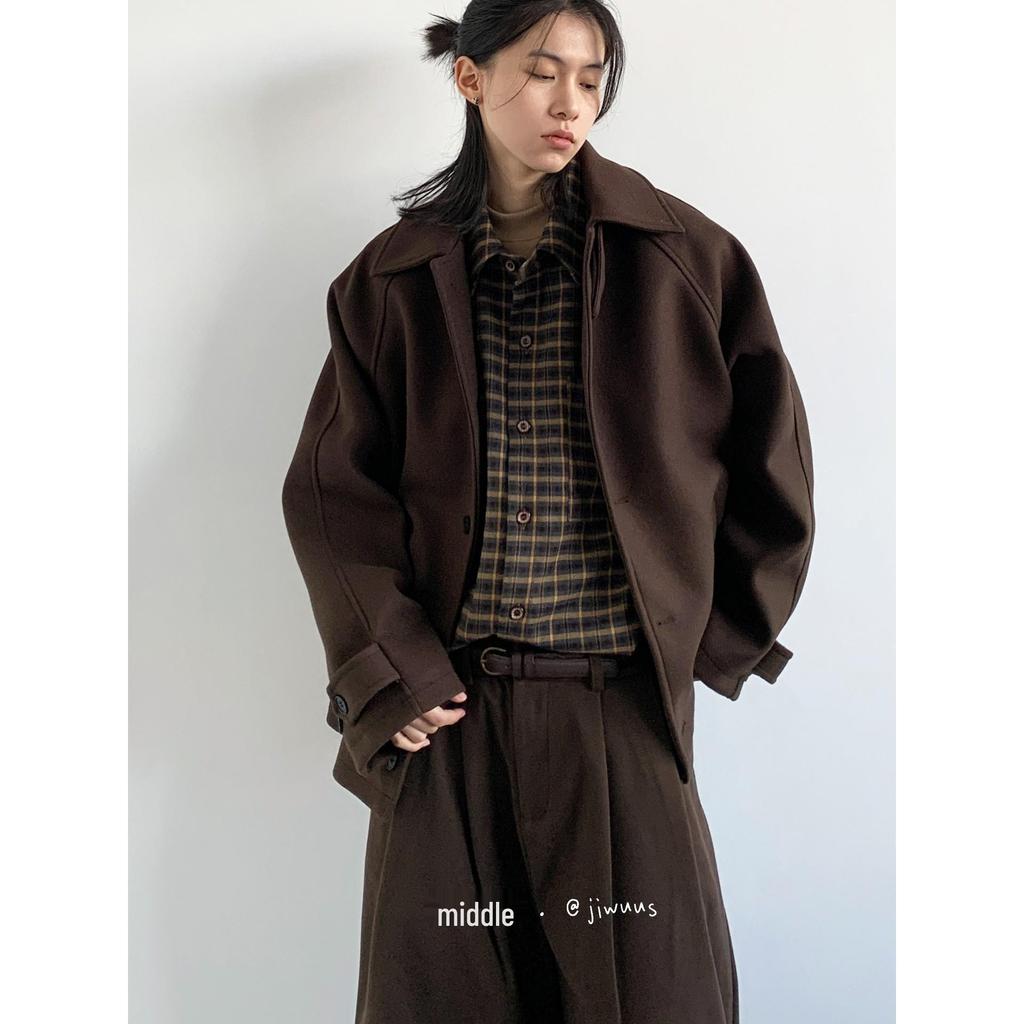 Unisex Retro Coffee Woolen Coat with Raglan Sleeves