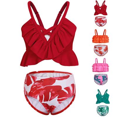 Παιδικό μαγιό δύο τεμαχίων με βολάν Γυναικείο μαγιό Tankini νήπιο εμπριμέ μπλουζάκι με μονόχρωμο σλιπ Καλοκαιρινό μαγιό παραλίας για παιδιά