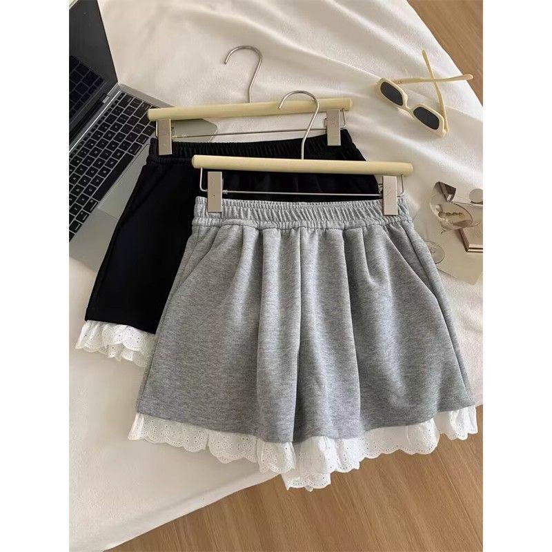Elevate your summer wardrobe with these chic lace trim spliced shorts. Crafted from a soft and breathable cotton blend, they offer comfort and style for warm days. The high waistline provides a flattering silhouette, while the wide leg design ensures a relaxed fit. Perfect for casual outings, these shorts effortlessly combine elegance and ease, making them a versatile addition to any closet.