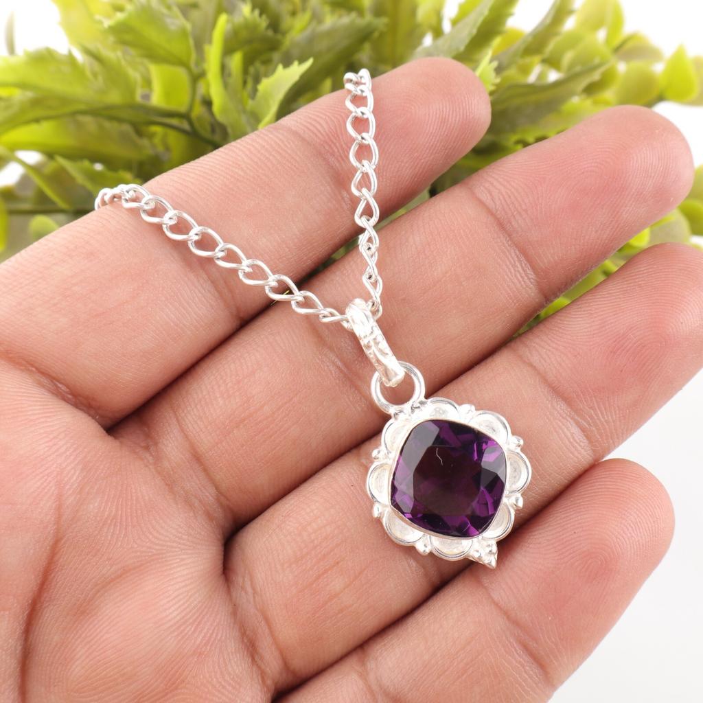 Natural Amethyst Gemstone 925 Solid Silver Jewelry Handmade Small Pendant 1.50" PP-2-2