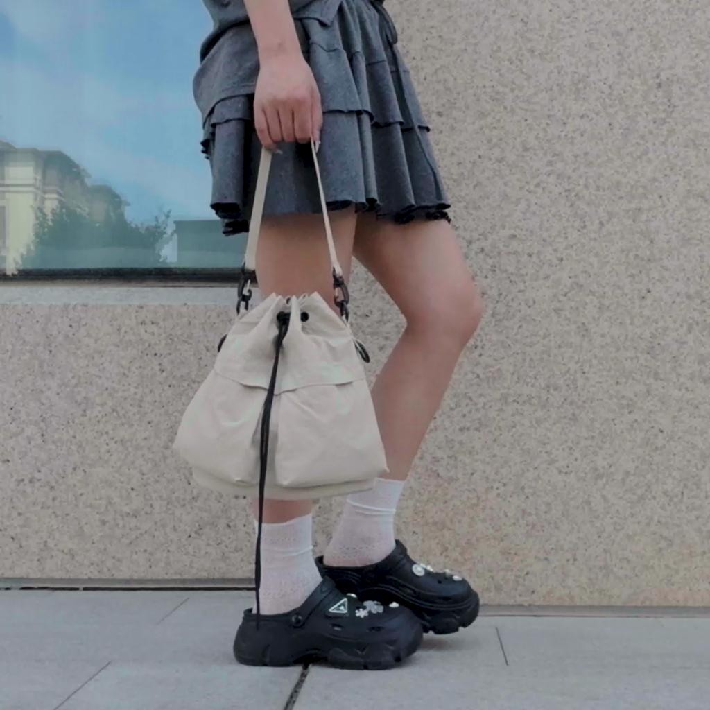 Nylon Small Satchel Multi-Pocket Lightweight Hand Bucket Bag Women's Shoulder Crossbody Bag