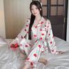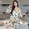 French Style Pajama Set Women Silky-Touch Polyester Long Sleeve Pants Set Youthful Polka Dot Lightweight Lounge Wear Seasonal Comfort Sleepwear