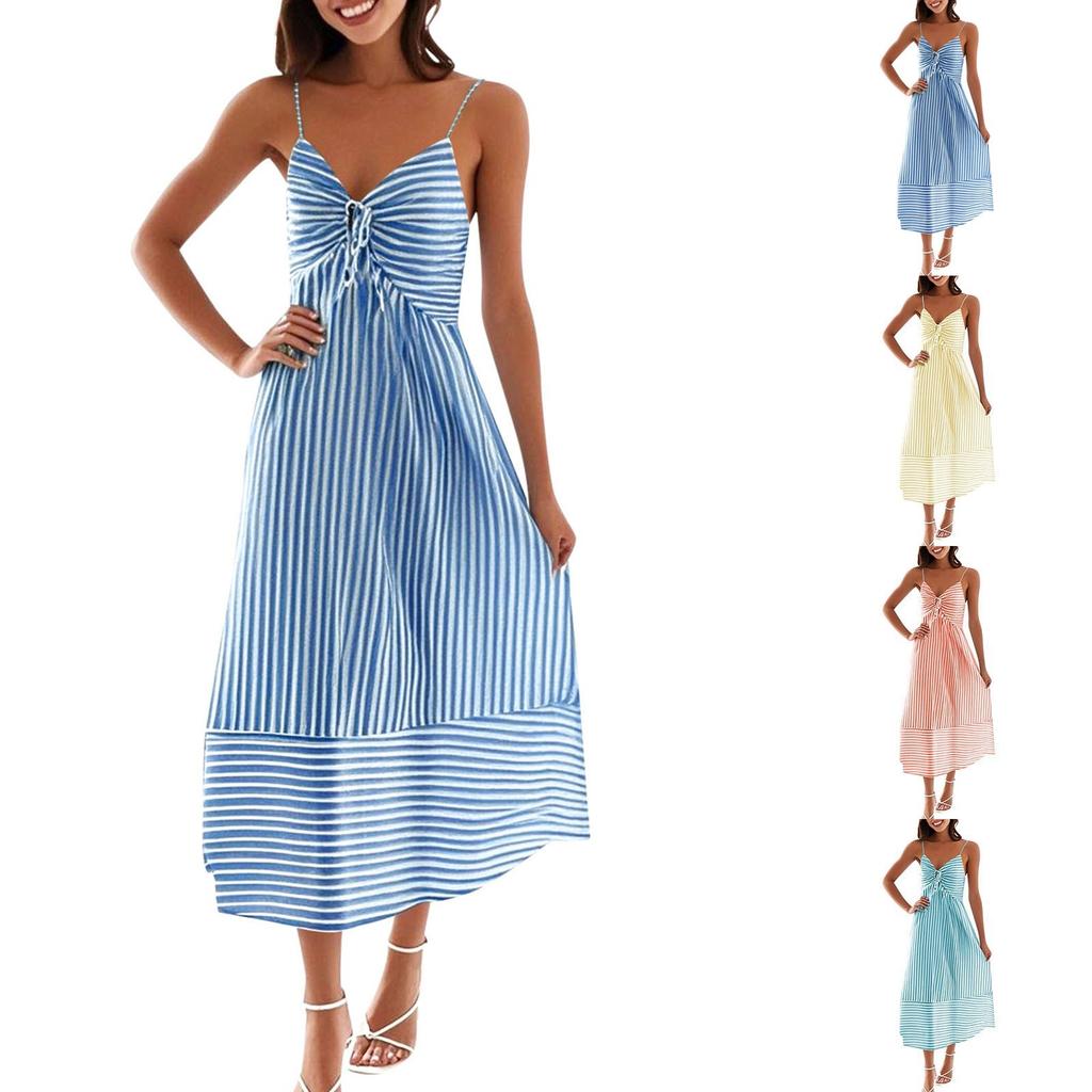 Women's Summer Fashion Casual V-neck Striped Suspender Dress