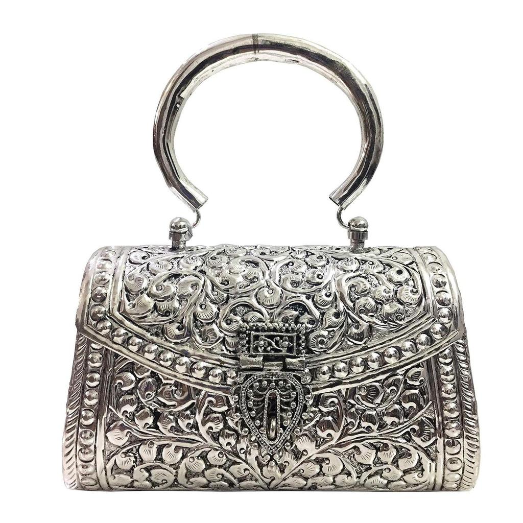 Γυναικείο Τσαντάκι Κλατς (ΛαβήΑσημί) Σχεδιασμένο από τεχνίτη με κοπή μετάλλου σε πλαίσιο και Όμορφο Λεπτό σκάλισμα γίνεται πάνω του με το χέρι