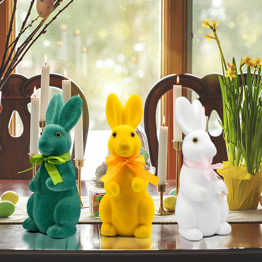 Easter Bunny Ornaments Creative Colorful Flocking Doll Desktop Decoration Props