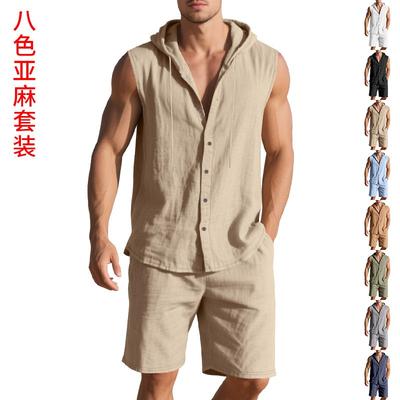 Mens Summer 2 Piece Outfit Shorts Set with Sleeveless Hooded Shirt Top Cotton Beach Casual Loose Fit Comfortable Athletic