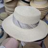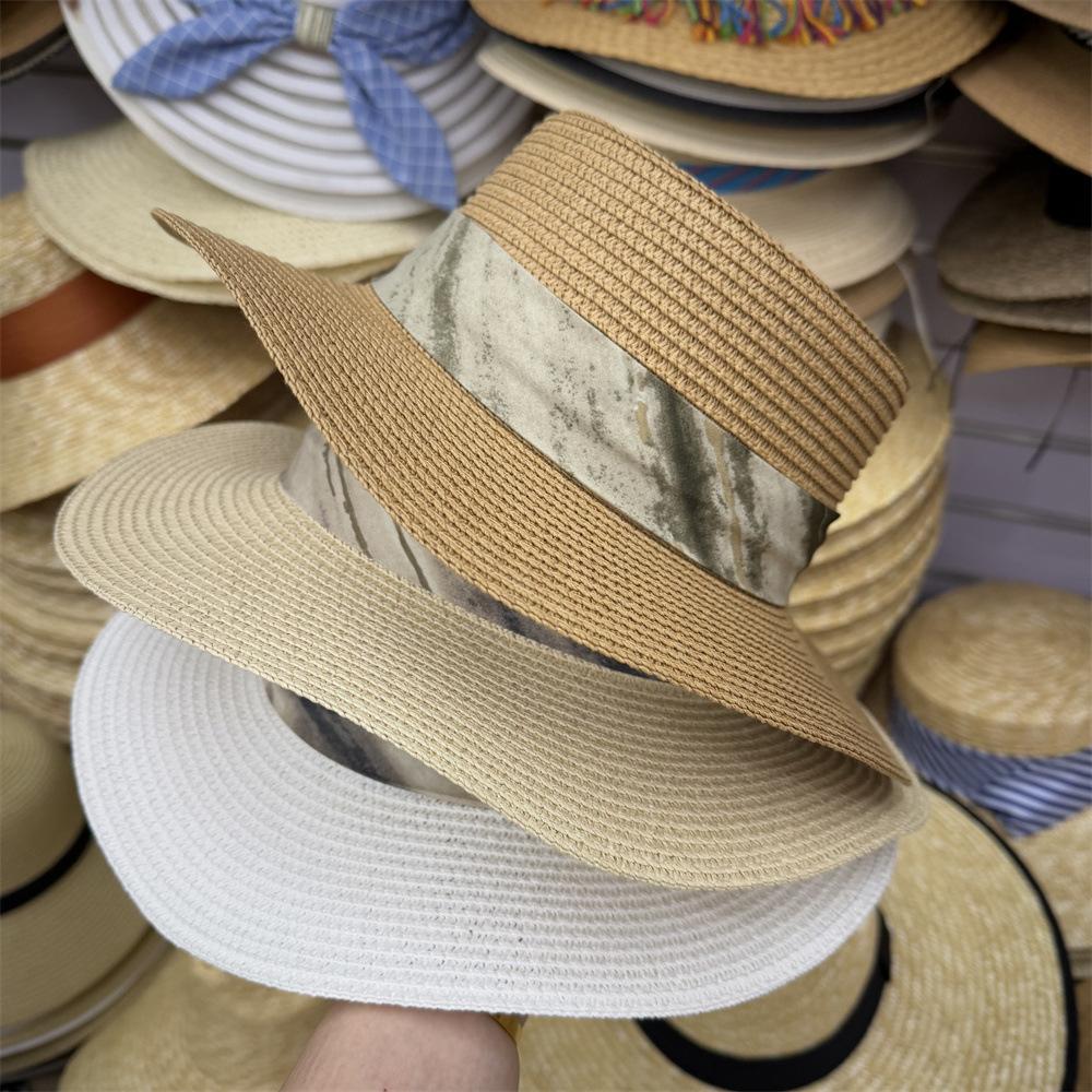 Ink wind webbing flat top straw hat women's summer sunshade travel versatile vacation top hat sun protection hat seaside