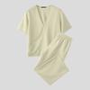 INCERUN Two Pieces Outfits Men V Neck Texture Short Sleeve Shirt Long Straight Pants Sets
