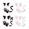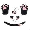 5Pcs Sets Cat Paw Gloves Winter Cute Cartoon Girl Open Finger Gloves Bell Headband Fox Cat Ear Headwear