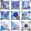 New Pillowcase Blue Simple Floral Letter Printing Pillow Home Sofa Cushion Cover