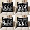 Easter Pillowcase Black and White Striped Rabbit Easter Egg Printed Linen Pillowcase Sofa Cushion