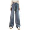 Introducing easy denim pants with a used finish♪ The classic blue-wash denim fabric has fringes on the hem for a casual design. The loose fit means you won't feel stressed when wearing them like wide pants◎ In addition to the elastic waist, it also has a drawstring, so you can adjust the waist to your liking! The soft denim material is breathable and comfortable to wear in spring and autumn, as well as in hot summer. Relaxed denim pants that are loose and comfortable to wear♪ Not only is the elastic waist elastic, but the drawstring accent allows for fine adjustments, so you can adjust the fit to your personal preference. The fringe on the hem further enhances the relaxed atmosphere. In addition, the ankle-length and cropped length give your feet a neat look, which is an attractive point◎ It can be worn in three seasons: spring, summer, and autumn, so it is an excellent item that can be worn throughout the year and expands the range of your outfits. It goes well with any top, and you can make it pop with a vivid color T-shirt or a soft color blouse.