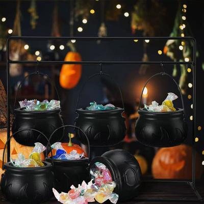 Halloween Decoration Witches Cauldron Serving Bowls Set with Iron Rack Skeleton Hooks Plastic Candy Bowl for Indoor Outdoor Party Decorations