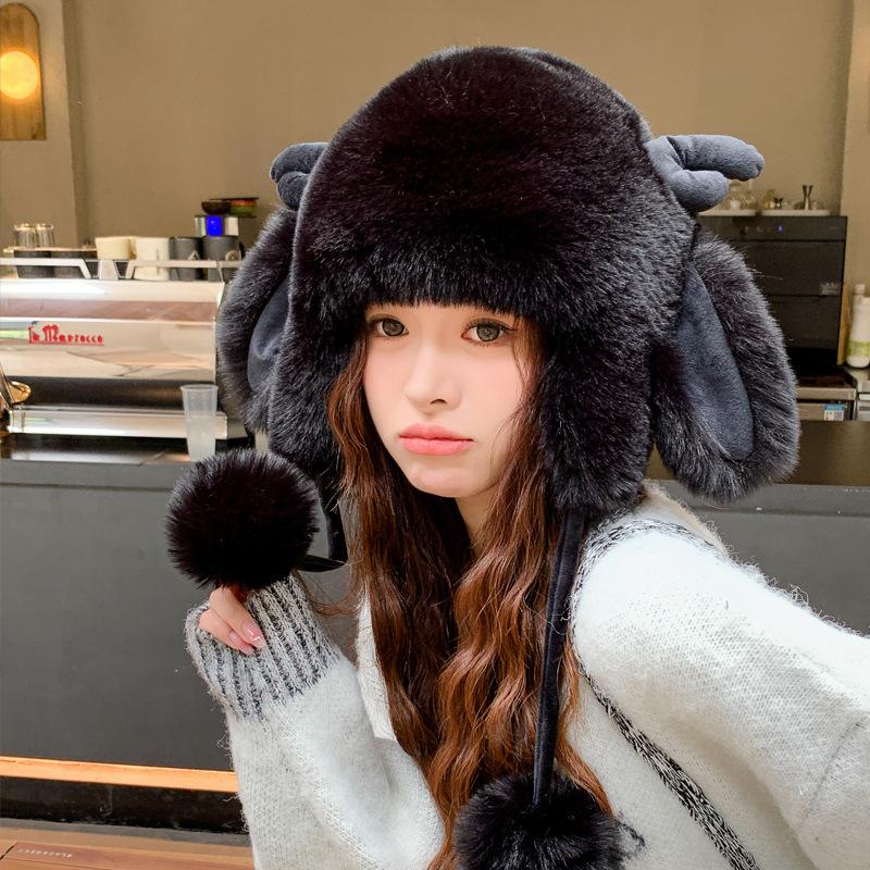 Autumn and winter hats, female Christmas antlers, plush hats, winter warm ear hats, thickened and cold-proof.