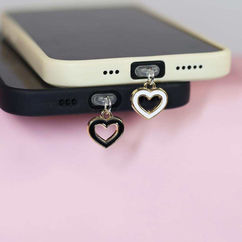 Ανταλλακτικό Στεγανοποιητικό Σκόνης Κινητού Τηλεφώνου Μαύρο Λευκό Καρδιά Αγάπης Σχήματος Ζευγαριού Κινητό Τηλέφωνο Κρεμαστό Για Αξεσουάρ IPhone Για Θύρα Samsung Type-C