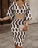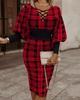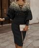 Women's Midi Dress O Neck Lantern Long Sleeve Dress Casual Wrap Hip Knee-Length Dress