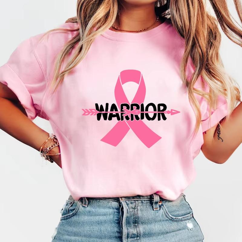 New Breast Cancer Awareness Warrior Summer Print Fashion Crew Neck Loose Short Sleeve Casual Women's Top T-shirt