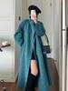 Retro, Blue Island Bay, wool long coat, blue temperament classic cape, winter double-sided tweed coat for women