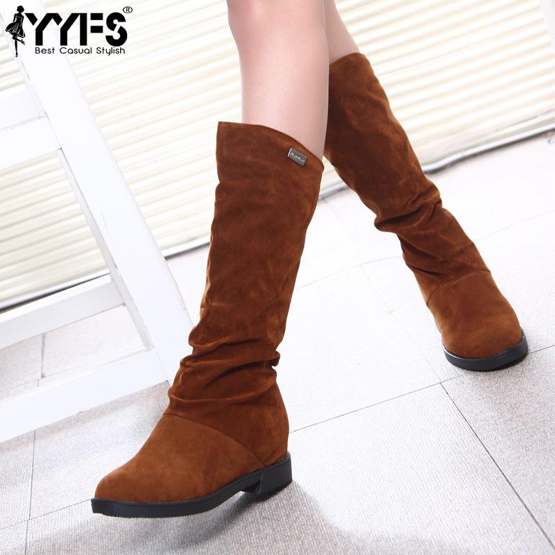 New Autumn and Winter European and American Fashion Sleeve Mid-calf Boots Flat Heel Women's Boots Low Heel Plus Velvet Knight Boots
