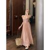 Pink temperament gentle dress women's collar shoulder short sleeves summer waist slim and thin skirt